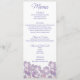 Menu Pastel mauve violet Mariage aux fleurs moelleuses. Ce design est basé sur mon oeuvre originale. Un design moderne avec des graphismes aquarelle peints à la main vous donnera une bonne humeur. Est parfait pour votre mariage élégant.