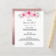 Une élégante carte de menu mariage tropical. Fleurs roses, fleurs florales hibiscus comme décor. Devant : arrière - plan blanc. Modèles pour vos noms, date et le menu mariage. Lettres de couleur noire. Dos : or Rose, rose faux faux arrière - plan à l'apparence métallique.