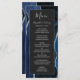 Cet élégant menu mariage moderne comprend un arrière - plan d'agate bleu marine couleur aquarelle orné d'une fausse parties scintillant argentée. Le texte apparaît dans une élégante écriture gris argenté et des polices sans serif sur un rectangle non noir. La conception de l'agate est répétée à l'envers.