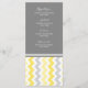 Elégant menu de dîner de mariage dans élégant citron jaune, gris et blanc chevron zigzags rétro motif, personnalisable avec vos détails de dîner, disponible dans une large gamme de produits mariages assortis.