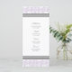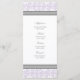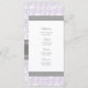 Elégant menu de dîner de mariage dans élégant pastel lavande violet, gris et blanc classique floral damassé vintage motif, personnalisable avec vos détails de dîner, disponible dans une large gamme de produits mariages assortis.