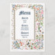 Menu Mariage médiéval aux oiseaux et fleurs illuminés