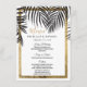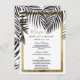 Le faux tropical élégant, chic, et moderne de plage a imprimé le contour d'or et le feuille de fronde de palmier de noir sur le blanc avec le faux a imprimé la typographie de paillette d'or, cartes de menu de réception de mariage. Cette conception classique et sophistiquée est parfaite pour la réception de mariage chique, élégante, et à la mode. Personnalisez avec votre propre menu sur l'avant, avec vos noms et dates. Customisez alors le dos avec votre initiale de monogramme. Toute la conception d'impression de photo.
