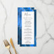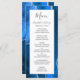 Cet élégant menu mariage moderne comprend un arrière - plan d'agate bleu royal aquarelle orné d'une fausse parties scintillant argentée. Le texte s'affiche dans une élégante écriture manuscrite gris charbon et des polices de cuivre sur un rectangle blanc. La conception de l'agate est répétée à l'envers.