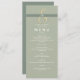 Contemporain, minimaliste, moderne sauge vert menu mariage avec calligraphie simple et élégant doré.