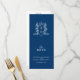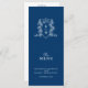 Menu du dîner mariage bleu foncé et blanc foncé. Modifiez ce menu de 4 plats avec votre propre libellé d'option de repas. Cimetière monographique à la main, formelle mais moderne, avec baies et feuilles entrelacés, et recouvert d'un motif de couronne cardiaque. © Dessin à la main original et design par Sarah Trett pour www.mylittleedenweddings.com exclusivement sur zazzle.