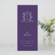 Couleur violet foncé et argenté sur le menu du dîner mariage blanc. Modifiez ce menu de 4 plats avec votre propre libellé d'option de repas. Cimetière monographique à la main, classique mais moderne, avec baies et feuilles entrelacés et couronné d'un look argenté. © Dessin à la main original et design par Sarah Trett pour www.mylittleedenweddings.com exclusivement sur zazzle.