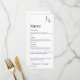 Ajoutez une touche moderne et raffinée à vos tables de réception avec ce menu minimaliste blanc de mariage monogramme. Avec ses initiales dans un design monographique élégant, ses élégants accents de script et sa typographie contemporaine, ce menu offre une mise en page propre qui présente magnifiquement vos options de dîner. Parfait pour les thèmes minimalistes mariage, ce monogramme de papeterie mariage allie style et raffinement, donnant à vos hôtes un aperçu de la cuisine de la réception.