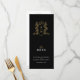 Menu du dîner noir, or et blanc mariage. Modifiez ce menu de 4 plats avec votre propre libellé d'option de repas. Cimetière monographique à la main, à la fois formelle et moderne, avec baies et feuilles entrelacés et recouvert d'un motif de couronne cardiaque, noir, blanc et or. © Dessin à la main original et design par Sarah Trett pour www.mylittleedenweddings.com exclusivement sur zazzle.