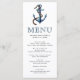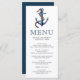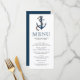 Menu de mariage à thème nautique élégant avec ancre et corde peintes à l'aquarelle et typographie moderne.