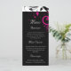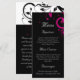 Cartes de menu contemporaines magenta et noir aux accents blancs, audacieuses et frappantes, avec arrière - plan délicat en feuille de rouleau tourbillon. Customisez en ligne avec les détails du menu de réception de votre mariage.
