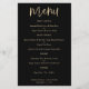 Budget Elegant Gold Script Mariage noir Menu Un design élégant en noir et or classique à un prix avantageux. Avec un script stylé pour Menu et personnaliser facilement le reste du texte. Les couleurs de police peuvent être modifiées via le menu de modification. Vous pouvez également modifier les couleurs arrière - plans si vous le souhaitez.