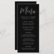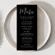 Menu mariage simple avec "Menu" affiché dans un script blanc avec un arrière - plan noir. Personnalisez le menu mariage noir et blanc en ajoutant vos noms, votre date de mariage et vos informations de menu. Conçu pour coordonner avec notre collection Simple Script mariage.