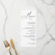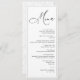 Conçue pour coordonner avec notre collection de mariages de script romantique, cette carte Menu personnalisable, dispose d'un texte de calligraphie de script balayé avec une police serif classe en noir avec un monogramme personnalisable sur le dos. Éléments correspondants disponibles.