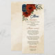 Carte de menu mariage unique avec fleurs romantiques orange brûlée et bleu marine et feuilles verts. POUR PLUS DE PRODUITS CORRESPONDANTS cliquez sur la collection ci-dessus ou contactez-moi.