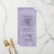 Customisez le joli menu Mariage pourpre teinté de marguerite avec les détails du repas que vous pourrez servir à votre déjeuner de douche nuptiale, réception matrimoniale ou brunch post-mariage en ajoutant la salade ou le premier plat, entrée ou deuxième plat et dessert ou troisième plat. Personnalisez-le avec les noms de la mariée et du marié, l'emplacement du lieu et la date de l'événement. Cet élégant menu botanique personnalisé mariage est doté d'une numériquement photographie florale améliorée d'une fleur marguerrière sur la tige dans un vase en verre avec une teinte violette de lavande légère ajoutée.
