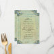 Un menu vintage de dîner de mariage avec plumes de paon et une délicate bordure de calligraphie. Cette invitation fait partie d'un ensemble complet.