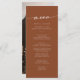 Cette carte de menu mariage photo chic en terre cuite boho est parfaite pour un mariage minimaliste. Le design moderne et bohème orangé terreux présente une calligraphie rustique simple, avec un style unique mais classique. Personnalisez l'arrière de votre menu avec votre photo de fiançailles préférée. Ce menu peut être utilisé pour une réception de mariage, un dîner de répétition, une douche nuptiale ou tout événement.