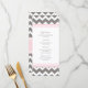 Élégant menu de dîner de mariage dans élégant motif rétro zigzags de bébé rose, gris et blanc, pastel clair et clair, personnalisable avec vos détails de dîner, disponible dans une large gamme de produits mariages assortis.
