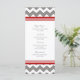Elégant menu de dîner de mariage dans élégant motif rétro zigzags de chevron rouge, gris et blanc, personnalisable avec vos détails de dîner, disponible dans une large gamme de produits mariages assortis.