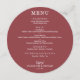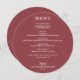 Une carte de menu ronde sur la terra rosa (ou n'importe quelle couleur) et des lettres chic en blanc vous permettent de choisir votre menu. Parfait pour une réception de mariage moderne, un dîner de répétition mariage, une fête d'anniversaire ou tout événement spécial avec un dîner assis. Choisissez N'IMPORTE QUEL ARRIÈRE - PLAN DE COULEUR, N'IMPORTE QUEL TEXTE DE COULEUR, N'IMPORTE QUELLE POLICE ! Personnalisez facilement votre menu et vos détails pour le dîner.