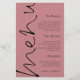 Un prix de taille budget 5.5" x 8.5", Ce design Rose Dusty moderne a Menu dans un élégant script défini qui tourne sur le côté gauche et le reste du texte est aligné à droite que vous pouvez facilement personnaliser ainsi que vos noms et date mariage au dos. Les couleurs texte et arrière - plan de chaque côté peuvent être changées à n'importe quel de votre choix via l'option customiser plus loin.
