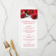 Magnifique et élégant menu de mariage avec deux polices différentes en rouge avec roses romantiques rouges.