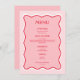 Élevez votre mariage Valentin avec notre menu personnalisé Funky Valentine Wavy Red and Pink Mariage. Ce menu mariage ajoute une touche audacieuse à votre décor de thème mariage rouge et rose, ce qui en fait une pièce hors du commun parmi vos tables mariage éclectiques. Idéales pour les couples à la recherche d'idées mariages valentines, ces cartes de menu mariages mettent en valeur les décorations des tables mariages valentines. Laissez cette décoration de table mariage funky inspirer vos idées de menu mariage et compléter votre décor de table mariage à thème rose et rouge mariage.