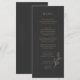 Le Royal Black Simple Minimalist Mariage Menu est un design sophistiqué et élégant qui combine un arrière - plan noir profond avec une typographie minimaliste. Cette carte conviendra parfaitement aux couples à la recherche d'une esthétique moderne et raffinée pour leur réception de mariage. Les lignes épurées et les éléments de décoration sobre font que l'accent est mis sur les plats culinaires, permettant aux clients d'apprécier le contenu du menu sans se distraire. Réalisée avec soin du détail, cette carte respire le luxe et la simplicité. Le fond noir offre un contraste saisissant avec le texte blanc ou métallique, créant une disposition visuellement attrayante et facile à lire. Présenté sur chaque table ou présenté à l'entrée, ce menu ajoute une touche d'élégance à toute décoration mariage. Customisez ce menu pour convenir à votre thème mariage en ajustant le texte et la mise en page. Son design polyvalent s'ajoute aux différents styles mariages, du contemporain au classique. Imprimé sur des matériaux de haute qualité, ce menu assure une durabilité et une sensation de qualité supérieure, ce qui en fait un souvenir inoubliable pour votre journée spéciale.