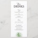 La carte de la nourriture à l'avant et la carte des boissons à l'arrière. Parfait pour la mariage tropicale ou pour ceux qui recherchent une esthétique moderne et minimaliste avec une touche de vert.