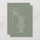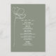 L'art en ligne rouge a inspiré le texte "Menu" en haut avec le texte personnalisé blanc et l'arrière - plan vert sage avec une fleur d'art en ligne simple à gauche.