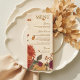 Élégant menu boho rustique mariage avec des fleurs de marigold, chrysanthème et dahlia automne fleuri avec une bordure vintage. L'orange chaud, le bordeaux, les tons dorés et les feuilles d'automne se marient avec le beige pour une aquarelle botanique. Style bohème romantique parfait pour les réceptions de printemps, d'été ou d'automne avec des accents de terre cuite et d'orange brûlé.