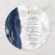 Menu Marine Blue Gold Agate Marbre rond Plate Mariage