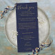 Menu Merci d'accueil de mariage Blue Gold Place Card