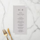 Ces élégantes cartes de menu mariage gris clair modernes ou ces cartes de menu pour le dîner de répétition présentent un design de texte noir simple qui dégage un style minimaliste. Ajoutez vos initiales ou votre monogramme pour les rendre complètement vôtres.