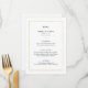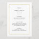 Ce menu de mariage moderne et élégant est composé d'un simple texte noir sur un arrière - plan blanc, avec un cadre en faux or.