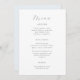 Le beau menu de la quinceanera, au style classique et élégant, présente un joli script de calligraphie et un dos bleu pastel clair de la carte. Personnalisez avec les détails de votre menu quinceanera.