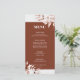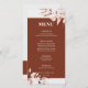 Wedding menu | Simple and BOHO chic, delicate branches of leaves in earthy shades of monochrome terracotta. This is a simple botanical invitation, with modern rustic elegant appeal. Part of a wedding stationery collection with matching wedding accessories. ©WhimsicalArtwork™ created for the BarefootBride™