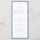 Set the tone for your wedding celebration with this modern yet classic menu, presented in a sophisticated dusty blue. The elegant serif typography and the prominent couple's monogram create a refined and personalized feel for your special day. This menu is designed to elegantly list your culinary offerings, from delightful starters to decadent desserts, providing a seamless experience for your guests. Its clean lines and understated design ensure it will be a beautiful addition to any reception table setting.