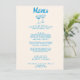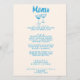 Un menu coloré rétro et moderne, noir et blanc mariage pour le dîner. Ce qui présente le design modèle chic de crémeux laiteux arrière - plan et de la typographie écrite à la main en bleu Marseille. Avec des lunettes à cocktails dessinées à la main. Un Parfait et assorti à toute la suite.