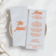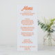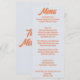 Un menu coloré rétro moderne pêche jaune mariage menu pour le dîner. Ce qui présente le design modèle chic de boho vintage bleu arrière - plan et orange gras typographie. Et un arrière - plan vert verdoyant. Parfait et assorti à toute la suite.