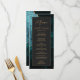 Ce menu mariage moderne et élégant dispose d'un arrière - plan d'agate bleu turquoise d'aquarelle orné d'une parties scintillant en faux or. Le texte apparaît dans une écriture élégante de couleur or et des polices sans serif sur un rectangle noir en ardoise. La conception de l'agate est répétée à l'envers.