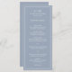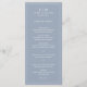 Un menu mariage simple au design moderne et élégant avec votre monogramme à deux lettres, vos noms et votre date entourés d'une fine bordure. Tout le texte est en blanc sur un arrière - plan bleu poussiéreux. Les polices et les couleurs arrière - plans peuvent être changées en n'importe quelle couleur en cliquant sur le bouton "personnaliser". Un design chic et design qui conviendra à un couple minimaliste.