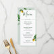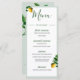 Citrons botaniques Jaune Verdure Moderne Elégant Mariage Design à la carte. Un menu de mariage personnalisé avec vos informations facilement changé pour customiser votre mariage stationnaire. Mariage personnel stationnaire de Just Fine Designs.