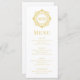 Ornate Floral Monogram Mariage Elegant Gold Menu propose vos initiales monogrammées personnalisées dans une typographie de script élégante entourée d'un cadre fleuri ornemental et d'une superposition de texte personnalisée. Ajoutez une touche de style et de sophistication à votre expérience mariage de dîner avec ces menus exquis. Créé par Evco Studio www.zazzle.com/store/evcostudio