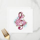 Pink treble clef with delicate, detailed pink Japanese cherry blossoms against white background painted over with light blue paint Blooming pink sakura.