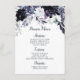 Menu Nocturne Floral Marine Bleu Chic Aquarelle Dîner