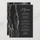 Cet élégant menu mariage moderne comprend une bordure en aquarelle noire ornée d'une parties scintillant en faux argent. Le texte personnalisable combine écriture manuscrite gris argent et polices sans serif sur un arrière - plan non noir. Le design d'agate noir et argent est répété à l'envers.
