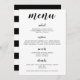Un menu simple et classe avec une bande noire et blanche à l'arrière avec du texte simple et élégant à l'avant. Ce menu peut être utilisé seul ou en complément de notre Suite de Faire-part de mariage noir et blanc. Consultez la boutique Scriptiva Zazzle - www.zazzle.com/scriptiva