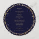 Carte de menu circulaire mariage cosmic étoilée mystique personnalisée avec galaxie laiteuse ciel de minuit avec poussière d'étoile, lune de croissant et d'autres symboles astrologiques en bleu marine et couleurs dorées. Cette carte est facilement modifiable. Si vous avez besoin d'aide pour la personnalisation de cette carte ou si vous avez besoin de plus de produits correspondants pour cette collection, envoyez-moi un message aimable via Zazzle.
